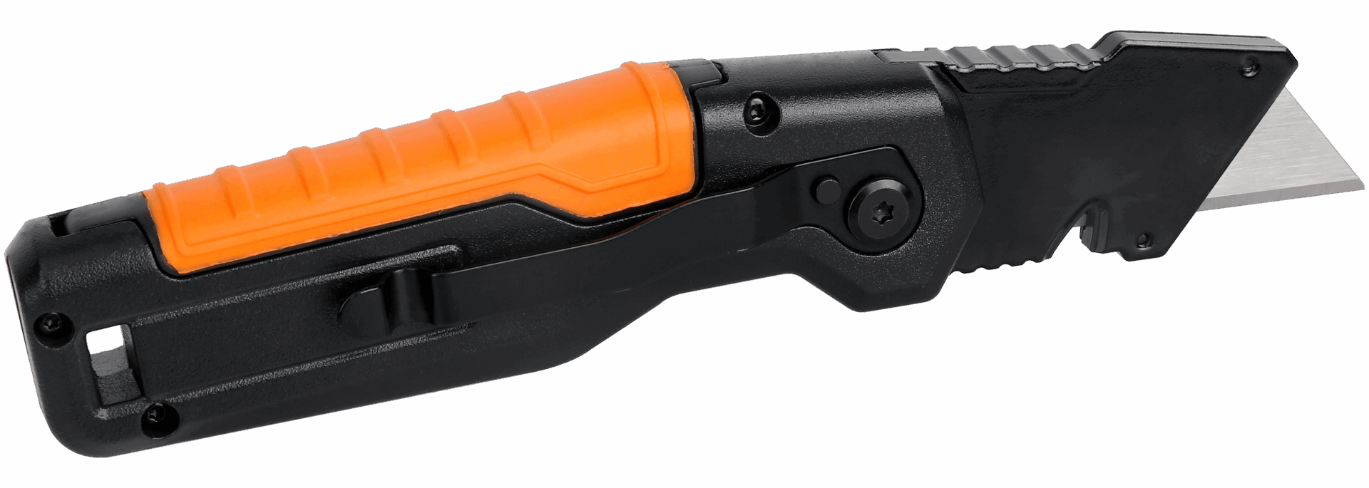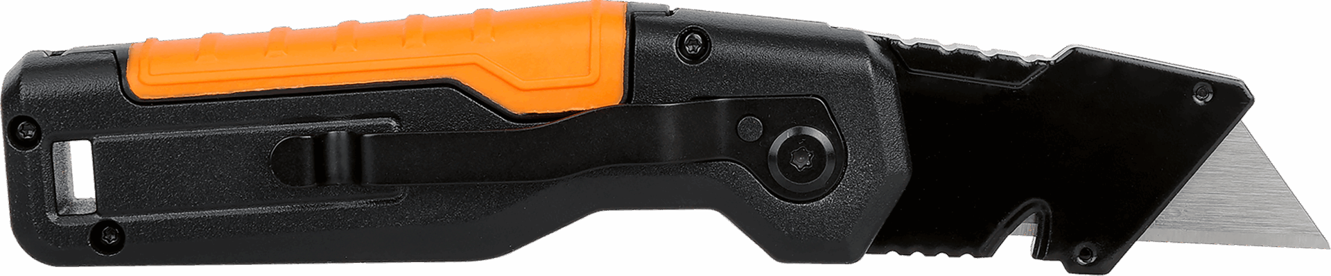 The PK1 Folding Utility Knife is a durable and versatile tool, featuring a high-strength blade with a built-in wire stripper and storage for three extra blades, ensuring convenience and readiness for various cutting tasks. Its quick blade-change mechanism allows for tool-less blade swaps, while the one-hand press-and-flip design ensures easy operation. Constructed from durable aluminum, it also includes a built-in metal belt clip and lanyard hole for portability and accessibility.
