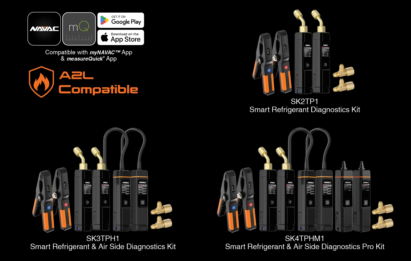 The SK4TPHM1 Smart Refrigerant & Air Side Diagnosis Pro Kit is a complete, professional diagnostic solution that includes NST1 and NST2 Bluetooth® temperature clamps, NSP1 Bluetooth® pressure probes, NSH1 Bluetooth® pressure psychrometers, and NSM1 Bluetooth® psychrometers. Giving HVAC technicians everything needed to accurately evaluate both refrigerant-side and air-side system performance, these tools work together to deliver precise temperature, pressure, and humidity measurements wirelessly through the myNAVAC App, eliminating the need for traditional hoses and bulky manifolds. With real-time data, automatic calculations for superheat and subcooling, and critical air-side diagnostics such as relative humidity and static pressure, the SK4TPHM1 enables cleaner setups, faster troubleshooting, fully covered diagnostics, and confident system evaluations for residential and light commercial HVAC applications.